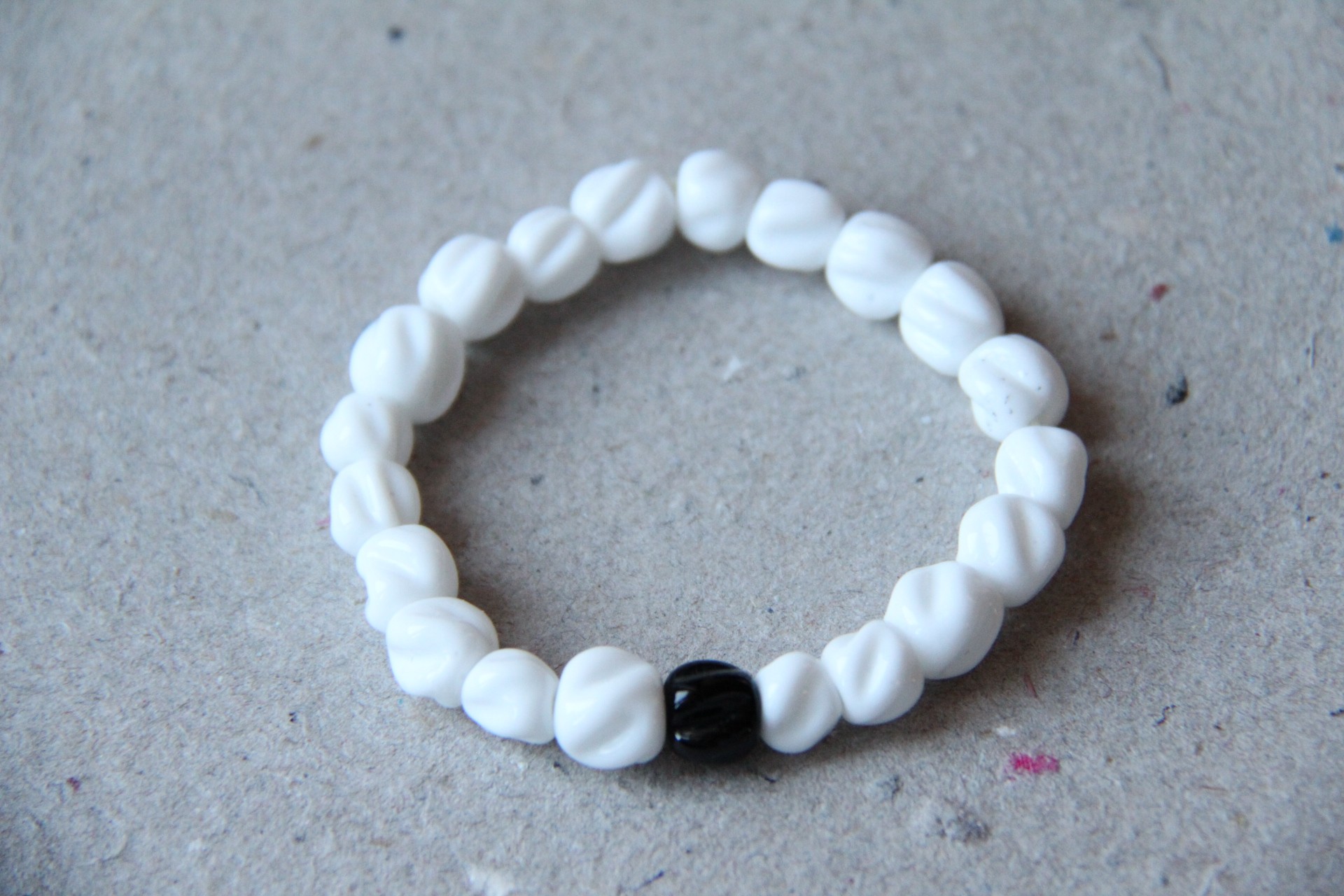 16 cm. Perler i hvid og sort med rille-mønster.