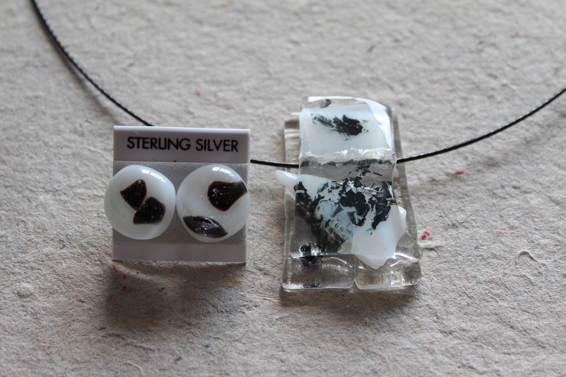 • Smykkepynt: Klart glas med sort mønster på hvid bund
