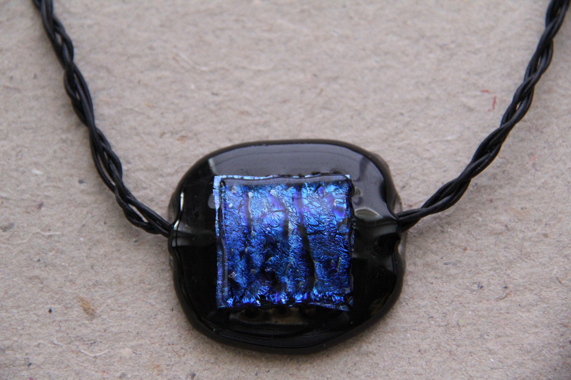 Snoet firedobbelt sort, 110 cm. Glassmykker med dybdestruktur og glimtende blå på sort bund.