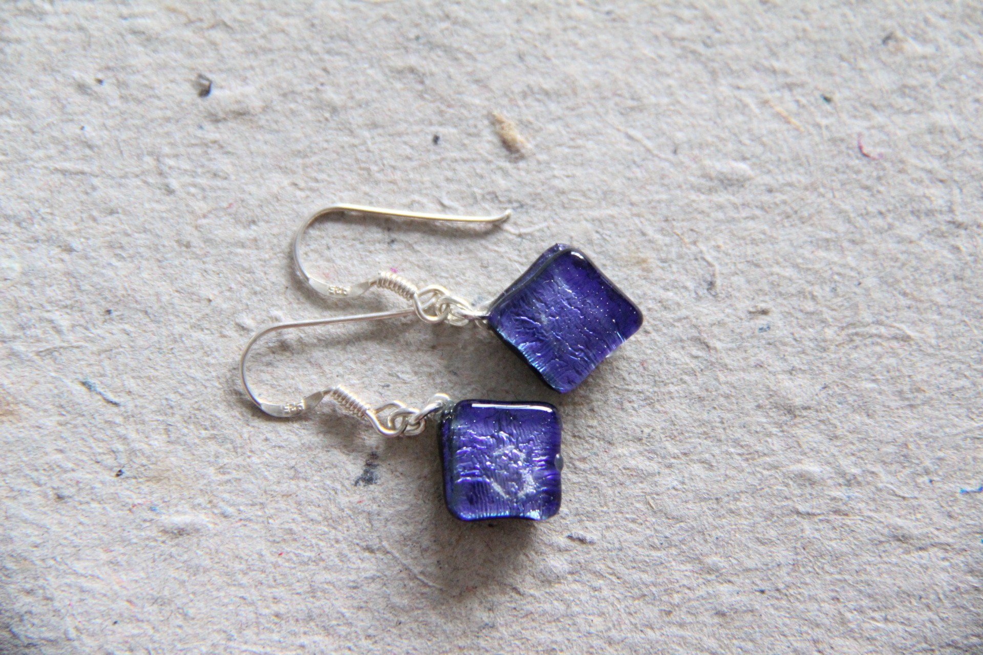Glimtende lys lilla under klart glas, ørekroge i sterling sølv.