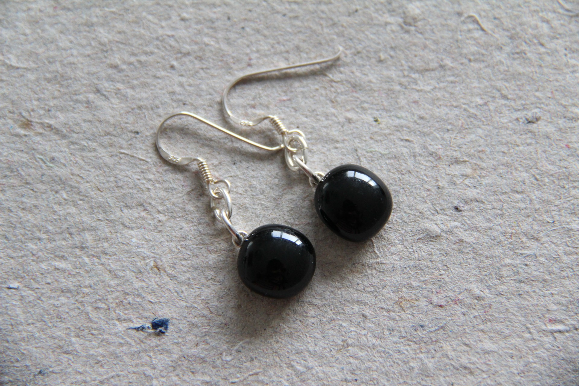 Oval sort, ørekroge i sterling sølv