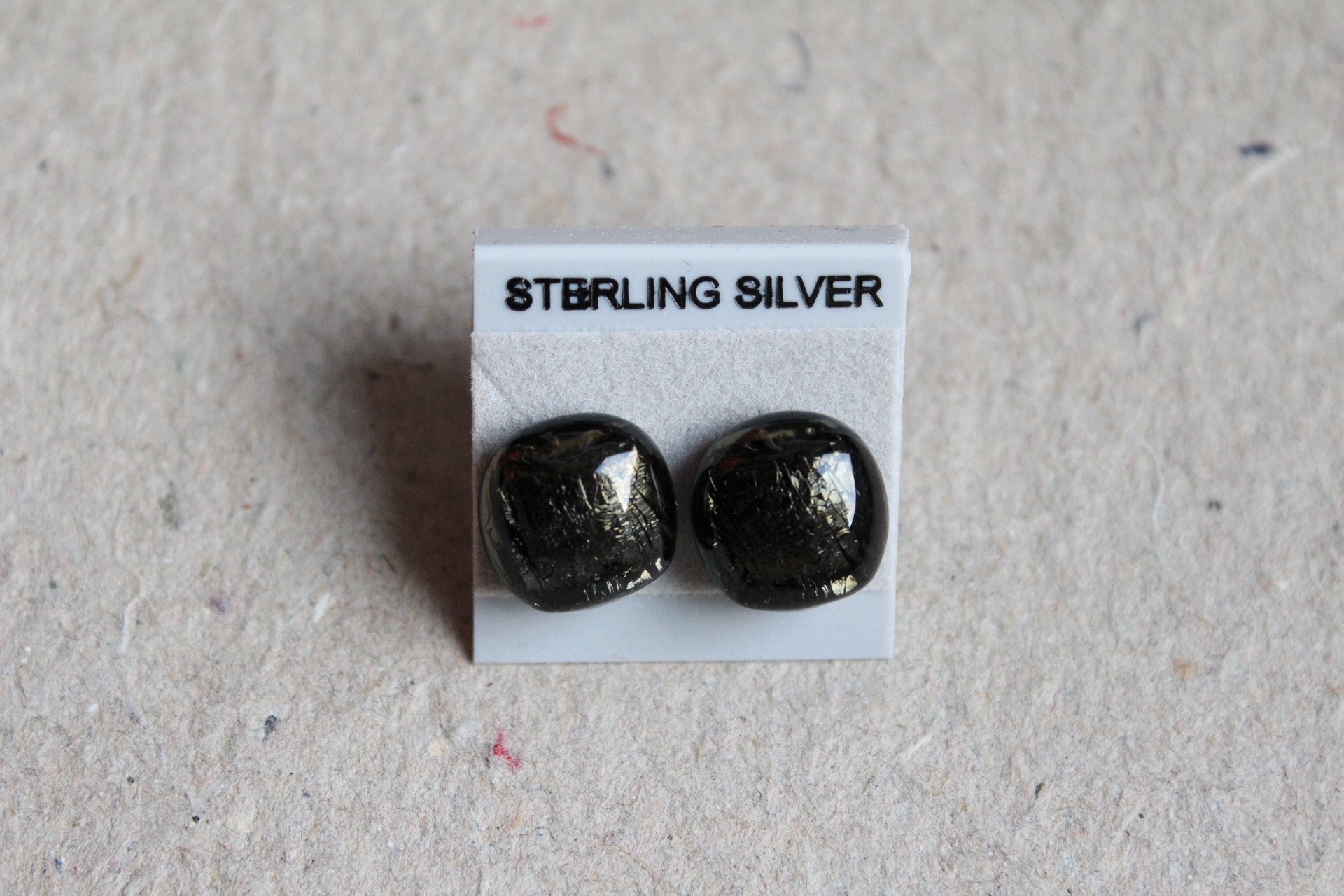 Svagt glimtende gråbrun, ørestikker i sterling sølv.