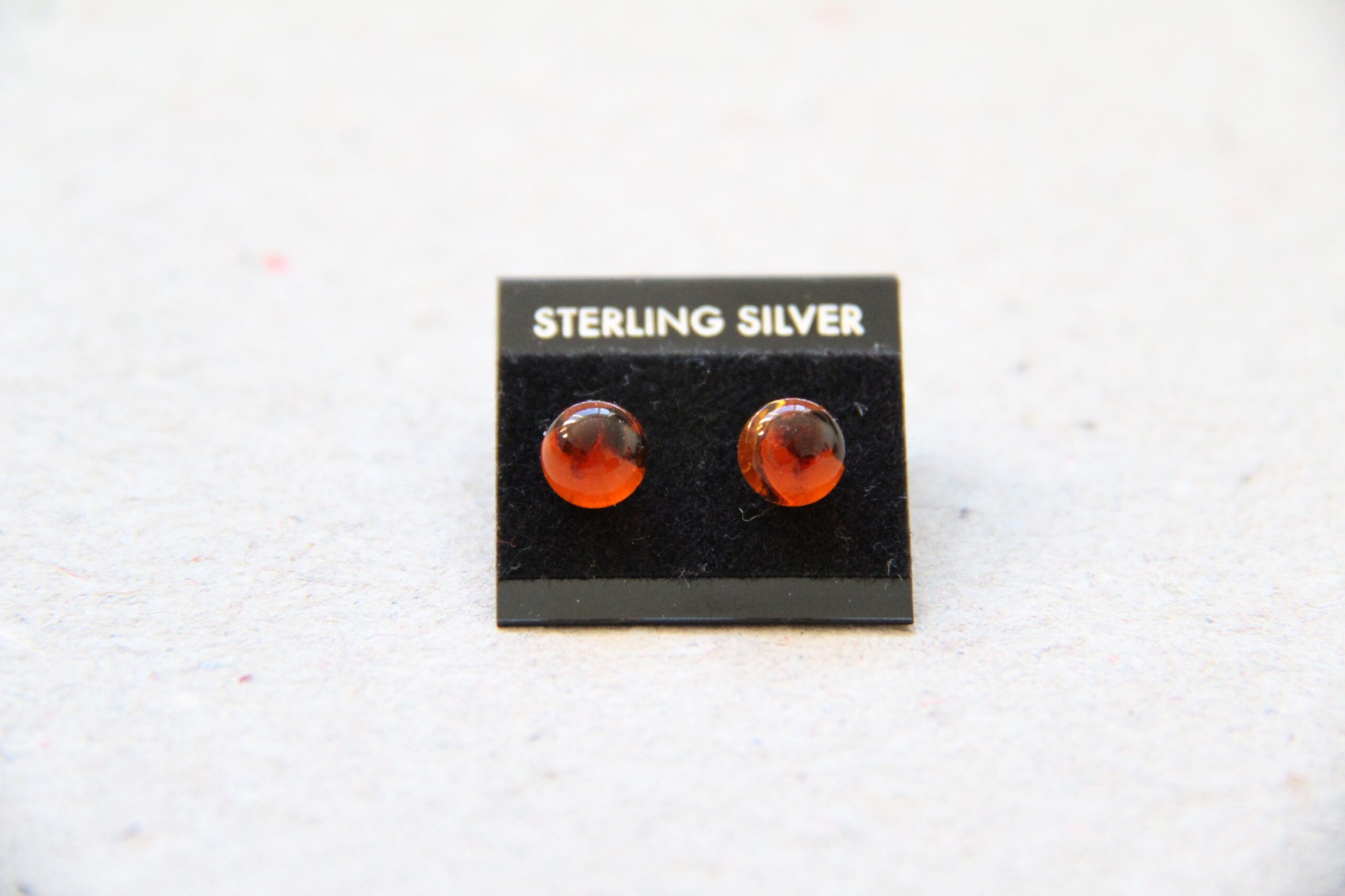 Klare orange or rav farvede perler på ørestikker i sterling sølv
