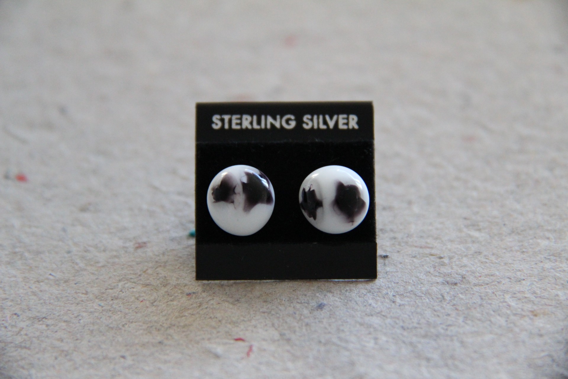 Sorte stjerner på hvid bund, ørestikker i sterling sølv