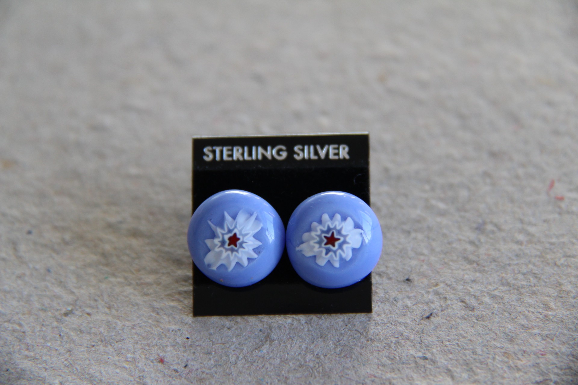 Stjerne i rød, hvid og lys blå nedsmeltet i lys blå, ørestikker i sterling sølv