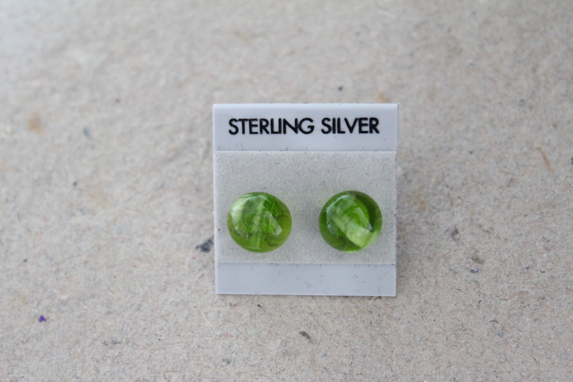 Klart glas i lys græsgrøn med et lysere strejf, ørestikker i sterling sølv