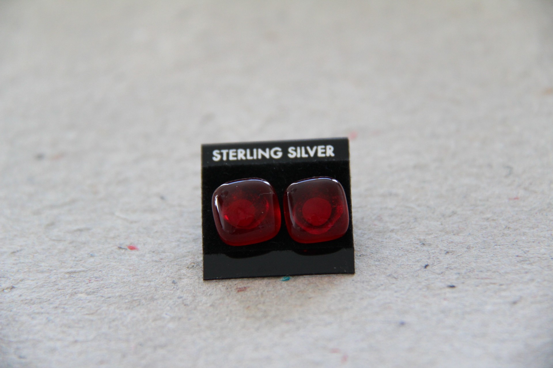 Firkantet klar rød, ørestikker i sterling sølv