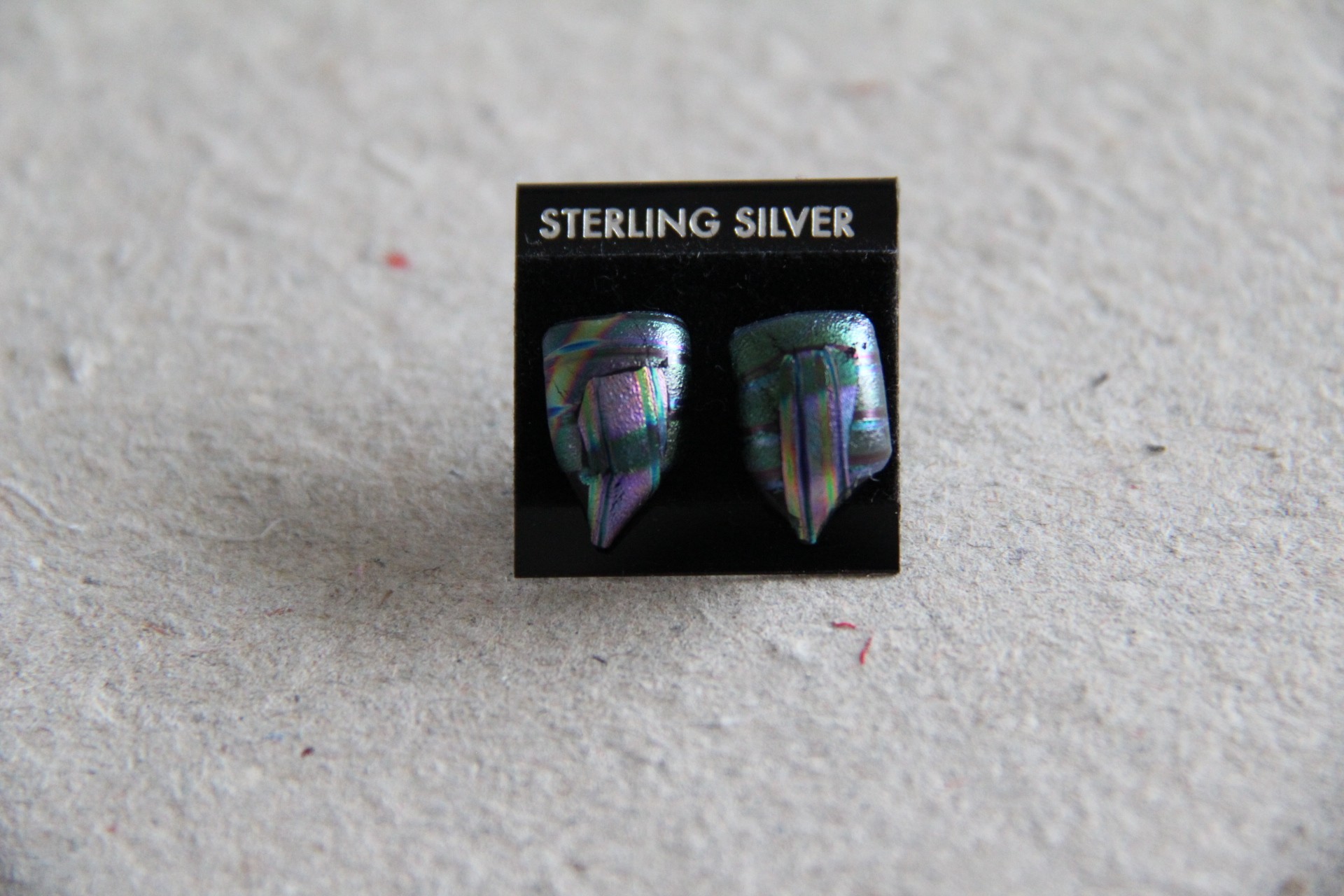 Glimtende lilla, blå, grønne og guld nuancer, ørestikker i sterling sølv