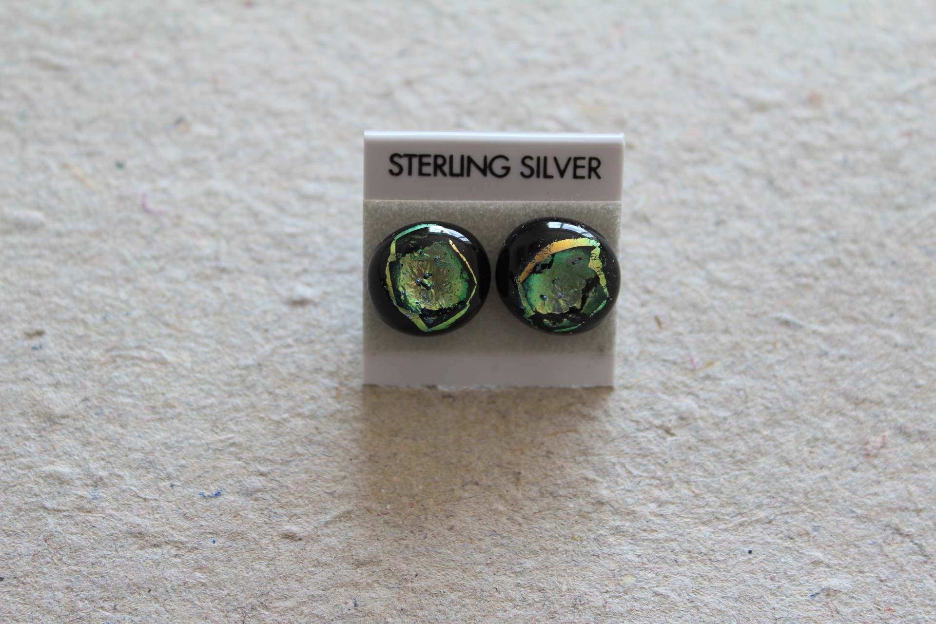 Glimtende guld med dybdeeffekt på sort bund, ørestikker i sterling sølv