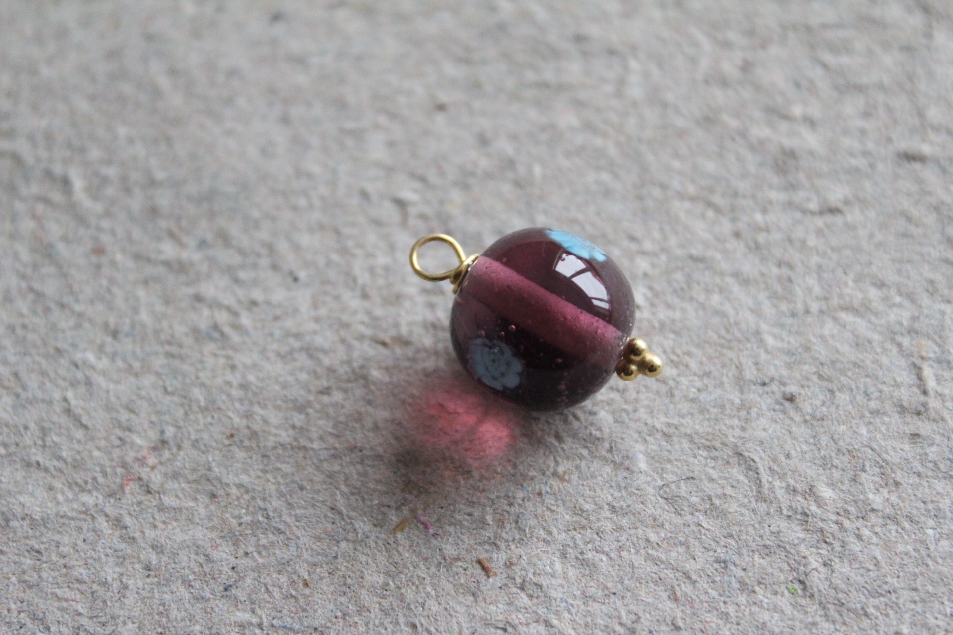 Perle i klar mørk lyng med med øje i sterling sølv.